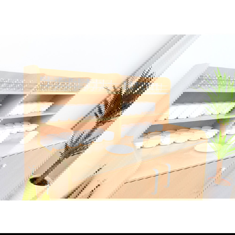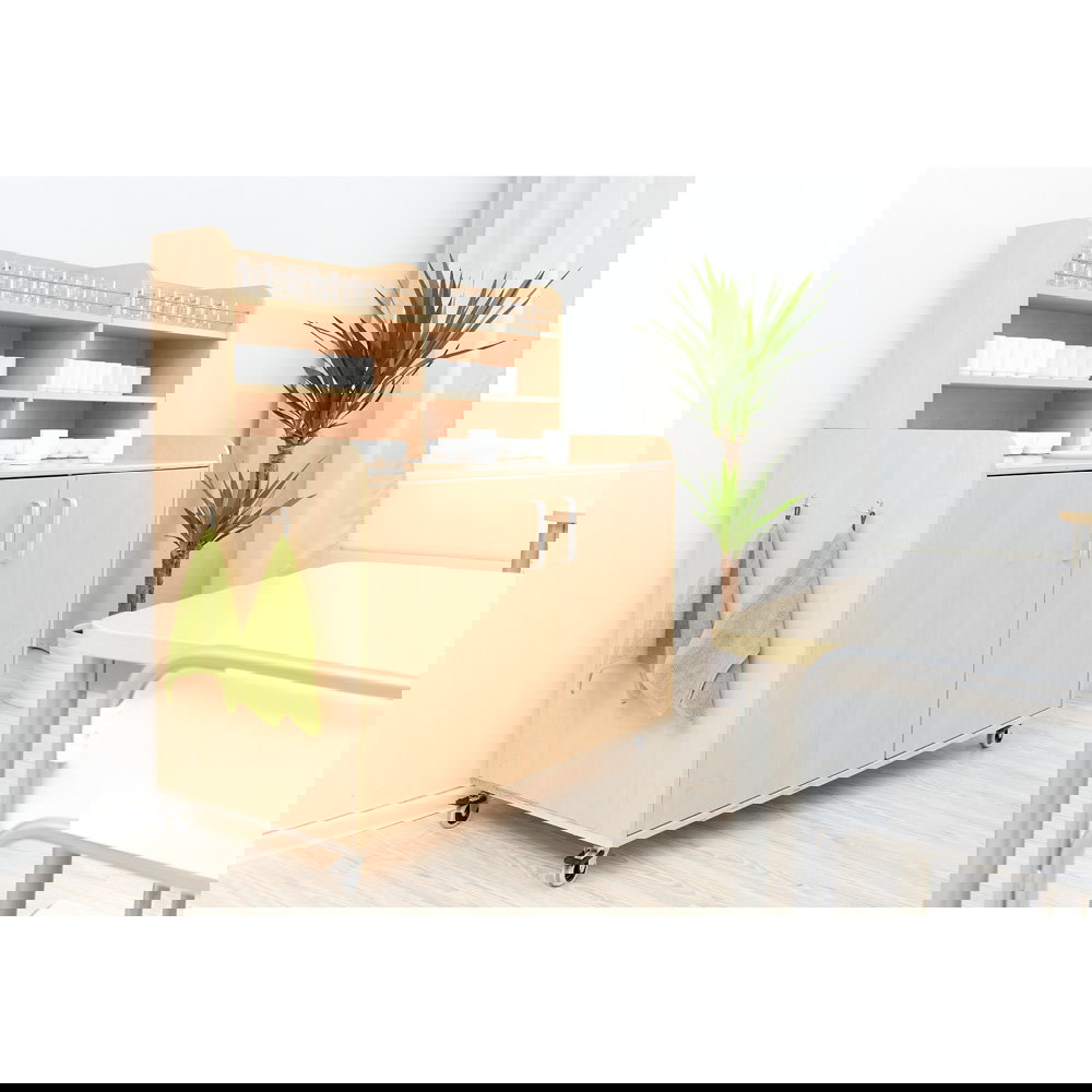 Ein gut strukturierter Raum erleichtert den täglichen Ablauf enorm. Wenn Sie Geschirr, Besteck und andere Utensilien sicher und griffbereit verstauen möchten, ist das große Küchenbüffet auf Rollen im Dekor Ahorn die ideale Wahl. Dieses geräumige und äußerst praktische Möbelstück bringt nicht nur Ordnung in Ihre Einrichtung, sondern bietet Ihnen durch seine durchdachte Mobilität genau die Flexibilität, die Sie im Alltag benötigen.