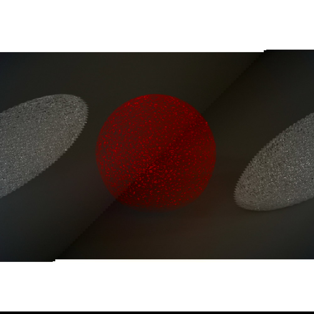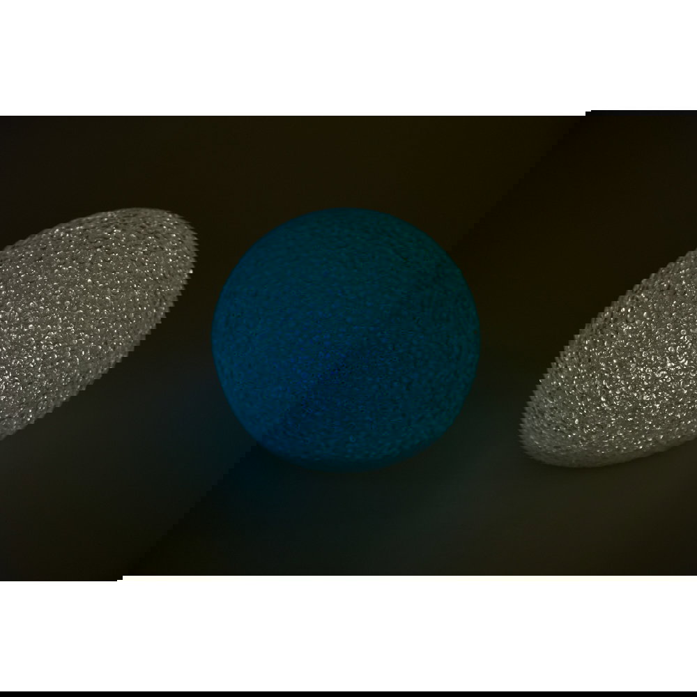 Neben der beeindruckenden Lichtwirkung überzeugt die Kugellampe durch ihre durchdachte und sichere Konstruktion. Das Gehäuse besteht aus einem angenehm weichen Kunststoff, der robust ist und eine ansprechende Haptik bietet. Ein besonders praktisches Detail ist der abgeflachte Boden der Kugel. Diese Formgebung garantiert einen absolut sicheren Stand auf Tischen, Regalen oder dem Boden und verhindert ein ungewolltes Wegrollen. Da die Lampe über Batterien betrieben wird, genießen Sie maximale Flexibilität bei der Platzierung. Sie benötigen keine störenden Kabel oder Steckdosen in der Nähe und können das stimmungsvolle Licht genau dort einsetzen, wo Sie es gerade wünschen.