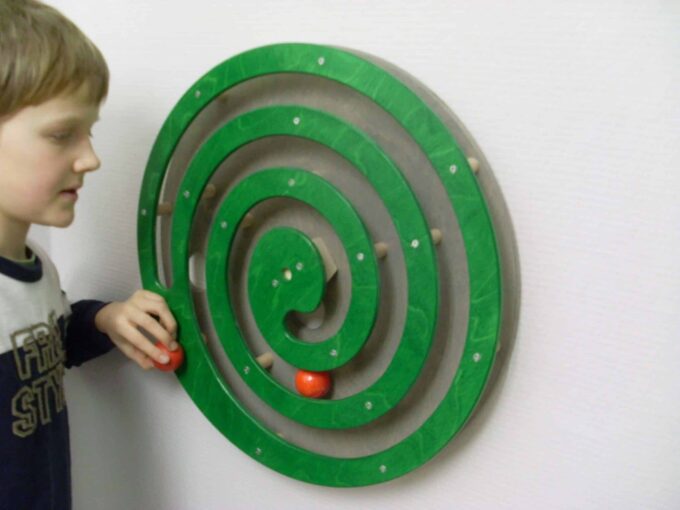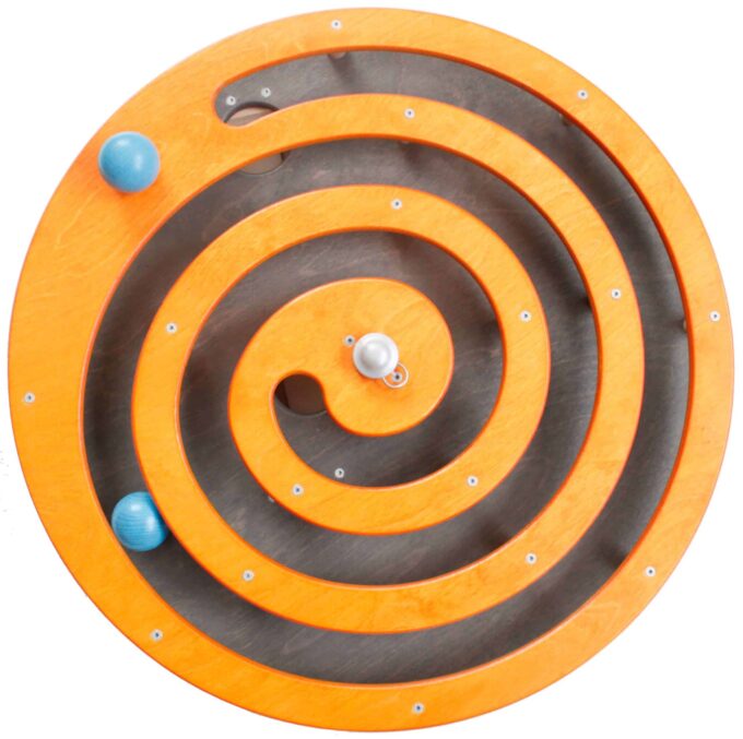 Kugelspirale von Holz Klang & Spiel – Wandspiel mit spiralförmiger Kugelbahn in Holz. Fördert Feinmotorik, Auge-Hand-Koordination und Wahrnehmung