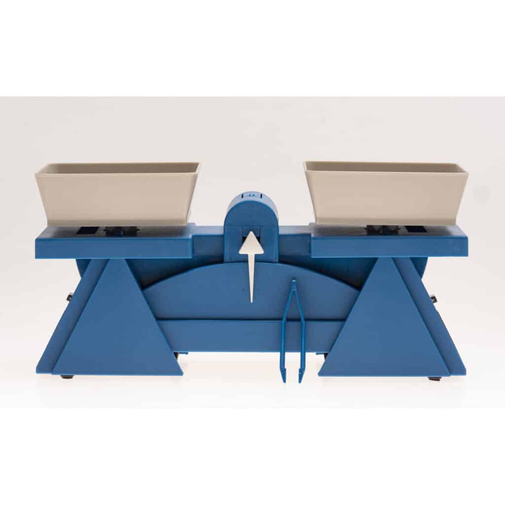 Da keine Skala vorhanden ist, können die Kinder nicht nur einzelne Gegenstände wiegen, sondern sie lernen durch das Experimentieren mit verschiedenen Gewichten, die Beziehungen zwischen den unterschiedlichen Körpern zu verstehen. Dieses Konzept fördert ihr Verständnis für Gewicht, Masse und die mathematischen Grundlagen, die damit verbunden sind.