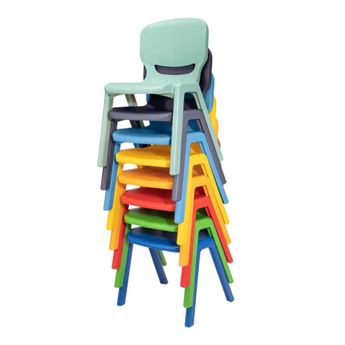 Dieser Kunststoffstuhl ist besonders vielseitig und erfüllt die Anforderungen der DIN EN 1729 für ergonomisches Sitzen. Mit Sitzhöhen von 31 cm, 35 cm und 38 cm ist er perfekt auf verschiedene Altersgruppen und Körpergrößen (108 – 158 cm) abgestimmt. Zudem ist er in einer Vielzahl von Farben erhältlich, die jedem Raum eine fröhliche Note verleihen.