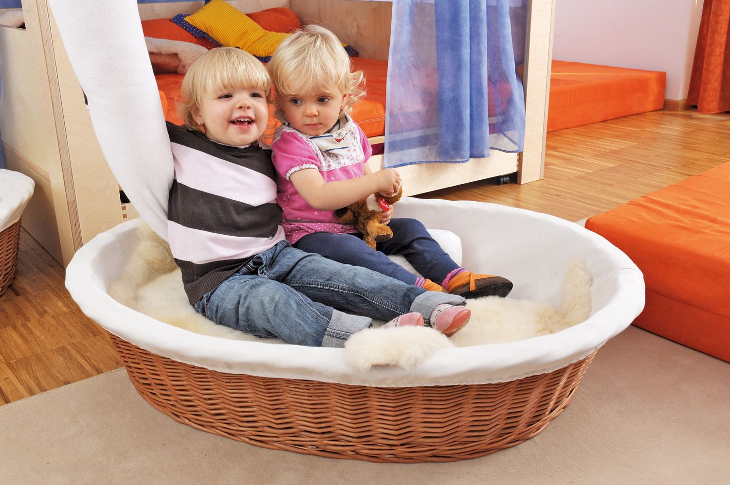 Der Kuschelkorb ist nicht nur zum Schlafen da. Er kann aktiv in das Spielgeschehen einbezogen werden – als Schiff, Höhle oder gemütliche Leseecke. Zusammen mit einem weichen Schaf-Fell (547 141) wird er zur perfekten Kuscheloase, in der Kinder alleine oder zu zweit zur Ruhe kommen und leise spielen können. - Hochwertige Naturmaterialien und pflegeleichte Handhabung