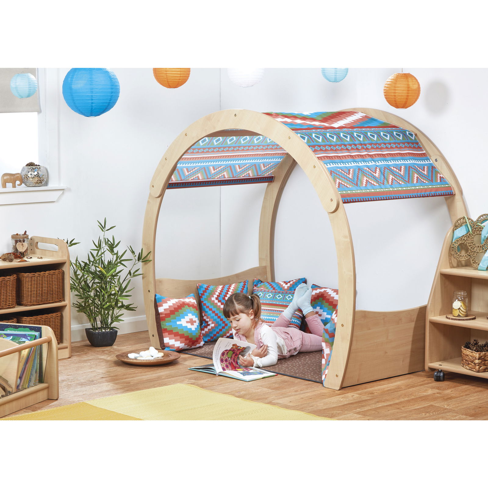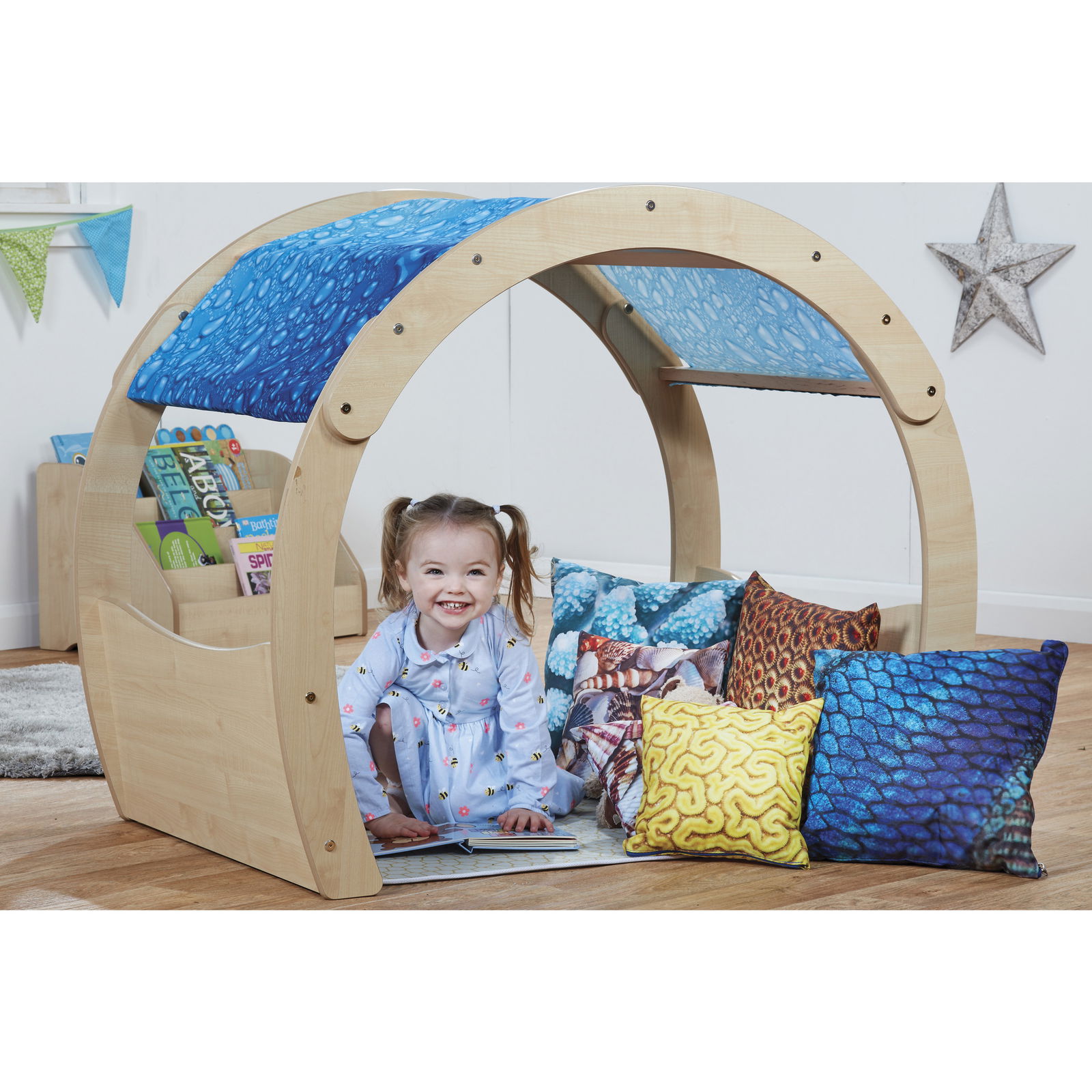 - Förderung der Lesekultur: Ausgestattet mit gemütlichen Kissen, lädt die Höhle förmlich dazu ein, sich mit einem Buch zurückzuziehen. Dies fördert die Konzentration und weckt die Freude am Lesen in einer entspannten Umgebung.