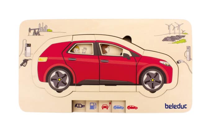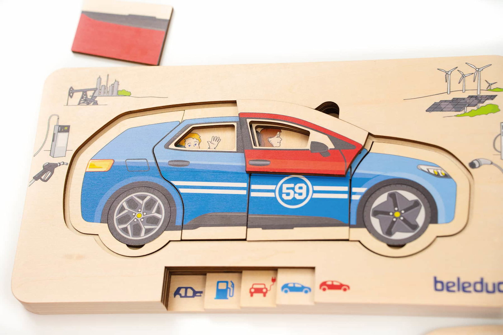 Das Besondere an diesem Puzzle ist der direkte Vergleich zweier Antriebsarten: Auf der einen Seite der klassische Verbrennungsmotor und auf der anderen der zukunftsweisende Elektromotor. Durch das schrittweise Einsetzen der 33 Puzzleteile auf fünf verschiedenen Ebenen und zwei transparenten Folien entdecken Kinder die Unterschiede und Gemeinsamkeiten im Aufbau. Gefertigt aus nachhaltigem Holz, ist dieses Puzzle nicht nur ein robustes Spielzeug, sondern auch ein Fenster in die Welt der Naturwissenschaft und Technik.