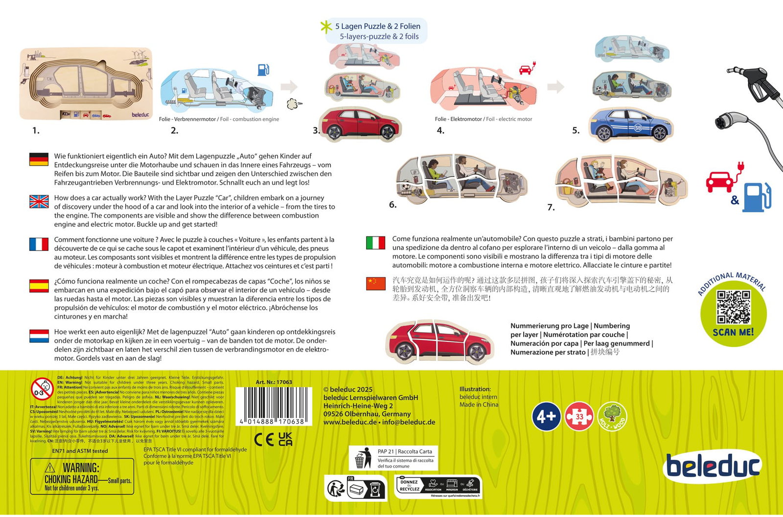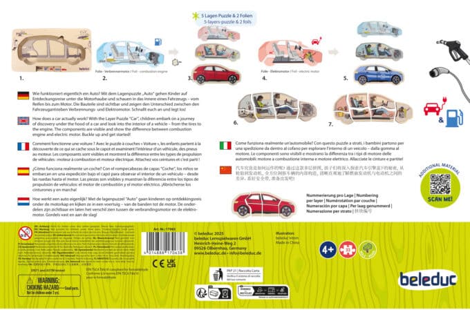 Wie sieht ein Auto von innen aus? Was verbirgt sich unter der glänzenden Karosserie und wie funktioniert eigentlich ein Motor? Das faszinierende Lagen-Puzzle „Auto“ nimmt wissbegierige Kinder ab vier Jahren mit auf eine spannende Reise in die Welt der Fahrzeugtechnik. Lage für Lage, Teil für Teil, enthüllt dieses innovative Holzpuzzle die komplexe Anatomie eines modernen Autos. Es ist weit mehr als ein gewöhnliches Puzzle – es ist ein Lehrmittel, das Neugier weckt und technisches Verständnis greifbar macht.