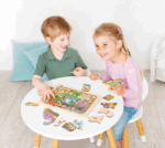 Kinder werden den Essens- und Lebenszyklus der Dinosaurier interaktiv erforschen, indem sie lernen, wie diese Giganten der Urzeit aus ihren Eiern schlüpfen und wie sie gefressen haben. Jede Puzzleschicht enthüllt ein neues Kapitel der Dinosauriergeschichte, einschließlich der Struktur ihres Skeletts und ihrer beeindruckenden Größe.