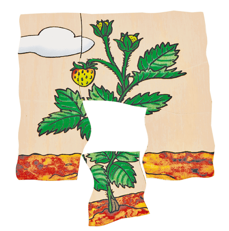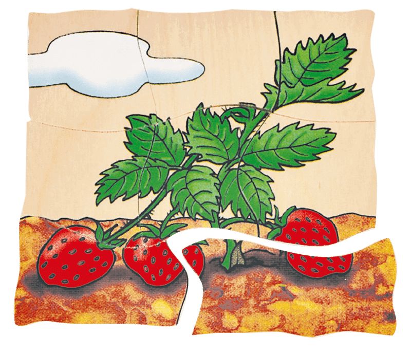 - Fünf Puzzleebenen in einem Set ermöglichen eine umfassende Betrachtung der Entwicklung einer Erdbeerpflanze.