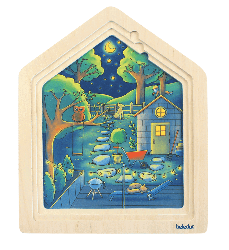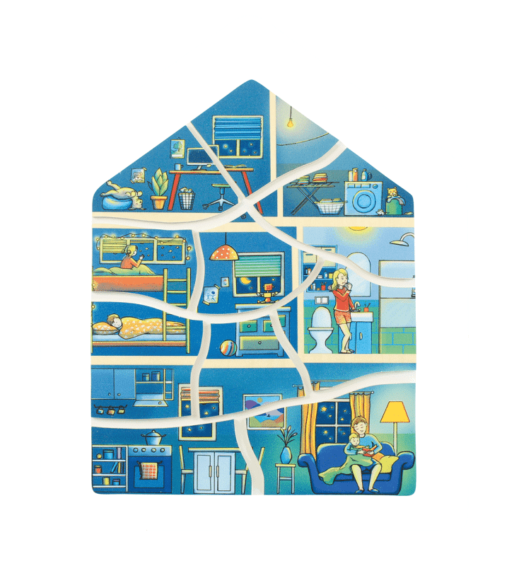 Lagen-Puzzle „Zuhause“ – Erlebe das Familienleben bei Tag und Nacht!