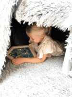 Kinder können beobachten, wie die Familie gemeinsam zu Abend isst, welche Spiele sie zusammen spielen oder welches Familienmitglied dem Hund gerade den Ball wirft. Die nächtlichen Szenen bringen eine magische Komponente ins Spiel, wenn die Details sanft im Dunkeln leuchten und so einen geheimnisvollen Garten und das ruhige Innere des Hauses bei Nacht offenbaren.