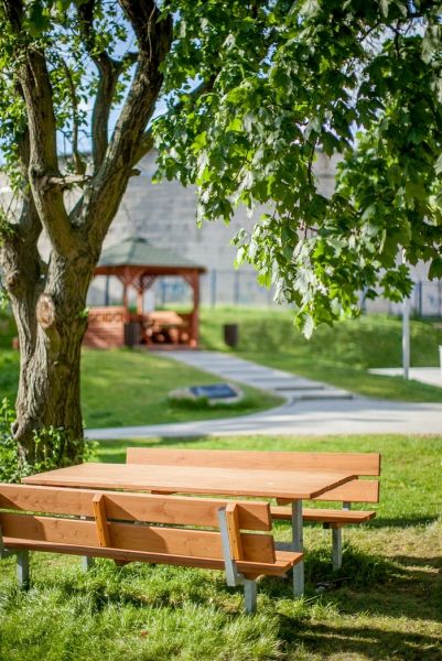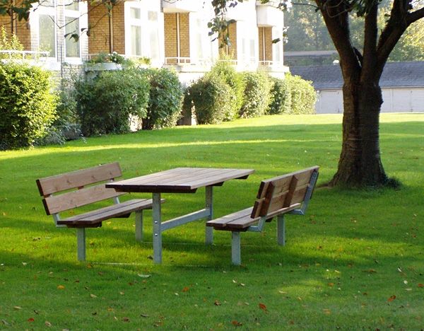 • Ideal für jeden Standort: Ob im Stadtpark, auf Schulanlagen oder im heimischen Garten – die Bank mit Tisch ist vielseitig einsetzbar und passt in jede Umgebung.
