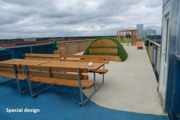 • Naturmaterialien: Die Verwendung von Holz aus nachhaltig bewirtschafteten Quellen und langlebigen Stahlkomponenten unterstreicht die Umweltfreundlichkeit.