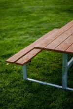Bank & Tisch Kombination aus Lärchenholz und verzinktem Stahl – Die ideale Lösung für geselliges Beisammensein