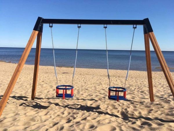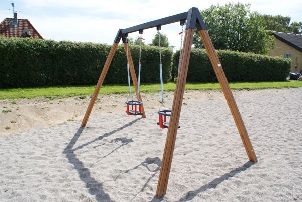 Doppel Baby Schaukel aus der Discovery – Linie ist der größere Bruder der kleinen Baby Schaukel. Es können zwei kleine Kinder gleichzeitig spielen. Die Doppel Baby Schaukel von Lars Laj ist eine tolle Idee für einen Kinderspielplatz. Dies ist eine spezielle Schaukel für kleine Kinder, sein charakteristisches Merkmal ist die hohe Sicherheit und garantierter Komfort für die Kleinen. Dieses Spielplatzgerät hat sehr interessant Schalensitz, wo das Kind bequem Platz nehmen kann. Diese Kinderschaukel ist eine großartige Lösung für die Spielplätze. Die Schaukel ist aus strapazier fähigem und witterungsbeständigen Materialien wie imprägniertes Lärchenholz, Edelstahl-Ketten mit Silikonschlauch beschichtet und solide Metallrahmenkonstruktion, um Rost zu verhindern und die Haltbarkeit zu erhöhen.