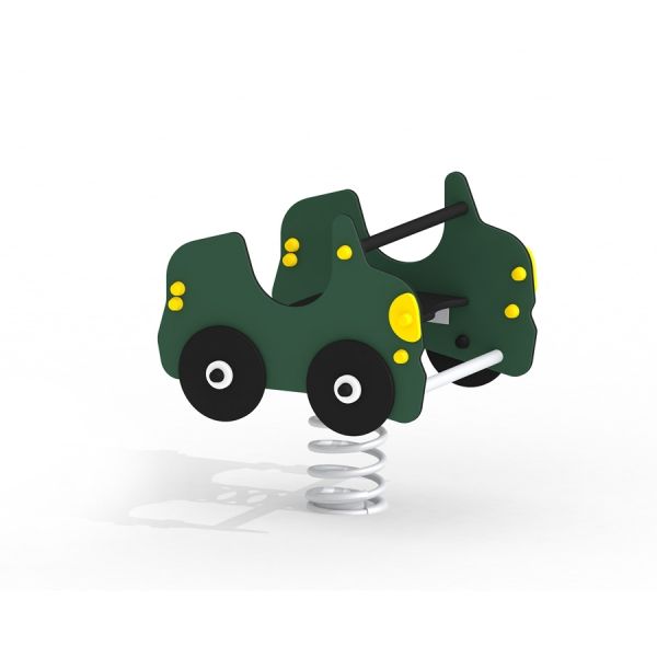 Die Attraktive Federwippe in Form eines Autos ist eine perfekte Wahl für jedes Kind und Spielplatz. Die Federwippe ist für Kinder ab zwei Jahre gedacht. Dieses Spielplatzgerät Doppelwippe Auto ist Teil der Discovery-Linie und ist für kleine Entdecker die neugierig auf die Welt sind gestaltet. Es ist aus hochwertigsten Komponenten hergestellt. HPL und Stahlfedern, gewährleisteten eine lange Haltbarkeit. Der Sicherheitsbereich beträgt 375×376 cm, die freie Fallhöhe beträgt 83 cm.