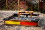 Um den Bedürfnissen der Kinder mit Behinderung gerecht zu werden, hat der renommierte und erfahrene Hersteller von Spielplatzgeräten Lars Laj den Sandkasten „Integration“ entwickelt. Dieser Sandkasten aus Holz ist größer und breiter als seine Vorgänger und sieht dank bunter Elemente sehr ästhetisch und einladend aus. Im Sandkasten „Integration“ können Kinder mit und ohne Behinderung gemeinsam spielen und erste Freundschaften schließen. Die Sitzbänke auf dem Rand sorgen dafür, dass der Sand nicht so leicht herausrieselt und bieten gleichzeitig eine bequeme Sitzmöglichkeit für Kinder oder ihre Eltern. Außerdem gibt es hier auch einen Spieltisch mit eingebautem Spielset, das den Kleinen ermöglicht, fantasievolle Sandplätzchen und Sandkuchen zu backen. Unser Sandkasten „Integration“ lädt alle Kinder zum kreativen und fantasievollen Spielen ein.