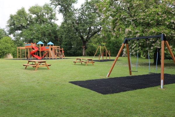 - Niedrige kritische Fallhöhe: Die Fallhöhe von 135 cm und die Sicherheitszone gewährleisten ein sorgenfreies Spielerlebnis für Eltern und Kinder.