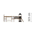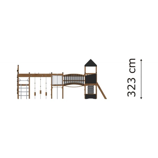 Die Spiel-und Kletteranlage King-Kong Burg Natur II ist ein universelles Spielgerät aus der Linie Classic Nature von Lars Laj. Die Spielanlage ist für alle Spielplätze im öffentlichen Bereich sowie für die Außenanlagen von Schulen und Kindergärten geeignet. Aus Sicherheitsgründen wird das Produkt für Kinder im Alter von drei bis acht Jahren empfohlen. Die Spiel-und Kletteranlage King-Kong Burg Natur II ist ein multifunktionales Spielplatzgerät mit zahlreichen Spielattraktionen und spannenden Herausforderungen, auch für größere Kindergruppen. Zur Verfügung der Kleinen stehen hier Kletterwände mit Klettersteinen aus Gummi, die das Abrutschen verhindern, Hängebrücken und Brücken mit beweglichen Sprossen, Leitern, Rutschstangen, Plastiktunnel, Stege, Balkons und die allseits beliebte Rutsche. Man kann hier motorische Möglichkeiten trainieren oder im unteren Bereich Fangen und Verstecken spielen. Unser Holzspielturm ist sehr dauerhaft und langlebig. Er ist aus Lärchenholz, Polyethylen-Platten, Plastik und rostfreiem Stahl gefertigt. Überdies ist das Produkt TÜV-geprüft und entspricht der Spielgeräte-Norm DIN EN 1176. Somit ist unser Spielgerät sicher und wird den Kindern lange Zeit viel Spaß beim Toben mit Freunden bereiten.