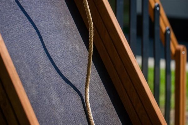 - Grundmaterial: Holz: Lärche, pulverbeschichteter Stahl, verstärktes Polypropylenseil, Glasfaser(Fiberglas), Wasserdichtes Sperrholz, HDPE, Gummi
