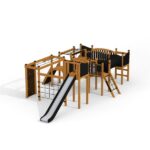 Im Leben eines Korsaren gibt es viele Herausforderungen, plötzliche Schicksalswendungen, Abenteuer und Überraschungen. Ein Korsar muss selbstverständlich Mut, Geschicklichkeit und viel Kraft aufweisen. Um diese Fähigkeiten zu erwerben, reicht es aus, einen Kinderspielplatz zu besuchen, auf dem das wunderbare mehrfunktionelle Spielgerät „Piraten Basis Natur“ der Firma Lars Laj steht. Unsere Holzkonstruktion kommt aus der Produktlinie Classic Nature und ist eine echte Rarität. Wie es sich für eine echte Basis gehört, besitzt „Piraten Basis Natur“ viele Seitengänge, Balkons und Quasi-Korridore. Des Weiteren finden die Kleinen hier vielfältige Spielattraktionen: Holzbrücke, Hängebrücke, Kletterwand und Kletternetz, schräge Kletterwand mit Seil, Holzleiter, horizontale und senkrechte Leiter, Schwebebalken, Tunnel und die unerlässliche Rutsche, dank der man schnell aus dem Abenteuerlabyrinth flüchten kann. Die Spielanlage Piraten Basis Classic Nature wird aus sehr langlebigen, widerstandsfähigen, umweltfreundlichen und insbesondere kindersicheren Materialien wie dauerhaftem Kunststoff, PE-Platten, rostfreiem Stahl und Lärchenholz hergestellt. Erwähnenswert ist auch, dass abgerundete Kanten und Klettergriffe aus Gummi die Kindersicherheit verbessern. Unser Produkt ist für Kinder ab drei Jahren geeignet.