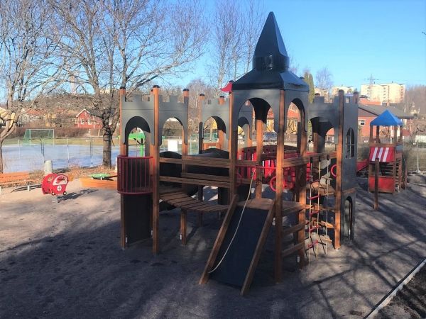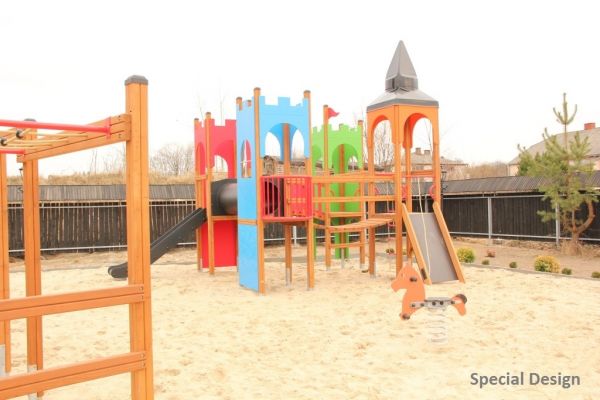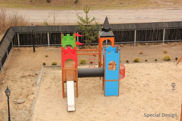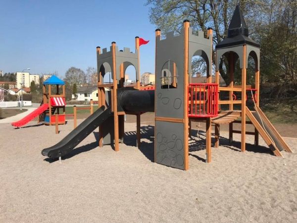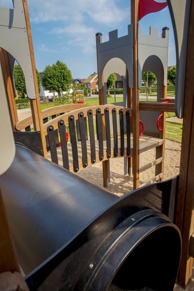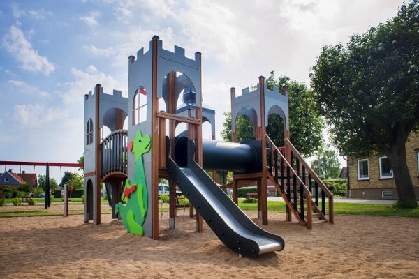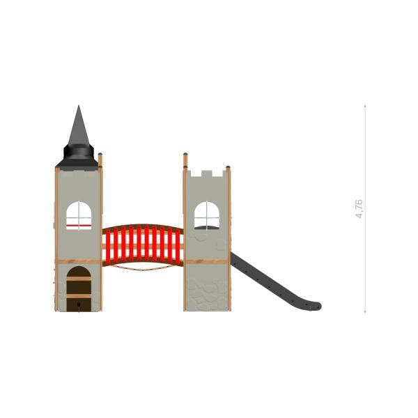 Camelot war die berühmteste Burg in der Legende von König Arthur, In Camelot, gründete König Arthur seine Tafelrunde mit den größten und tapfersten Rittern aus ganz Europa. Jedes kleines Mädchen träumt davon, eine Prinzessin zu sein, die auf ihren Traumprinz wartet. Und jeder Junge will ein Ritter in glänzender der Rüstung sein. der tapfer gegen den Drachen kämpft und seine Prinzessin erobert. Jedes Mädchen oder Junge, die auf einem Lars Laj Spielplatzgerät spielt, kann eine Prinzessin oder ein Ritter von Schloss Camelot werden. Dieses schöne und große Spielplatzgerät ist ein Hauptanziehungspunkt für jeden Spielplatz. Schloss Camelot verfügt über 4 große Türme mit Flaggen, Strickleitern, horizontalen Leitern, Kletterwände, Tunnel, Balkone und ist auch mit einer Rutsche ausgestattet. Dieses Abenteuerspielplatzgerät ist aus der Pioneer-Serie und ist aus extrem langlebigen und widerstandsfähigen Materialien hergestellt. Dieses schöne Einzelteil wurde für Kinder ab drei Jahren ausgelegt.