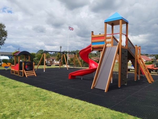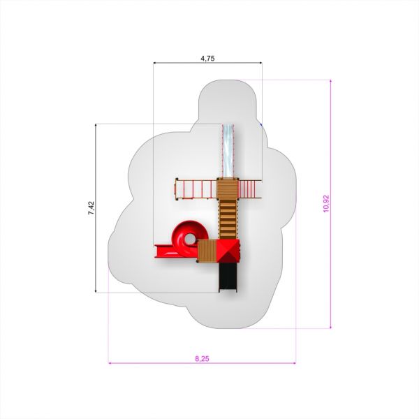 Zusätzlich sorgt die Kritische Fallhöhe von 245 cm und der notwendige Fallschutzbereich von 1092 x 825 cm für Sicherheit beim Spielen.