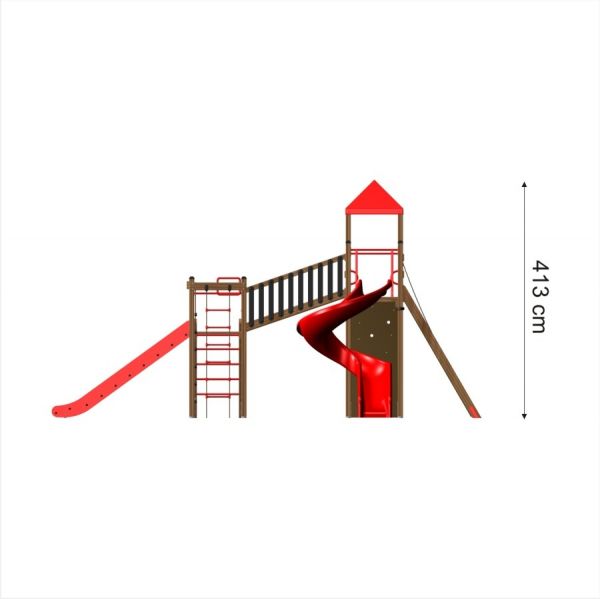 Die Höhe der Plattformen beträgt wahlweise 150 cm und 210 cm, und der Hauptanziehungspunkt ist die leuchtend rote Twister-Rutsche, die an den Spaß von Wasserparks erinnert! Diese Rutsche garantiert den Kindern ein aufregendes Rutscherlebnis, das sie immer wieder zurückkehren lässt.