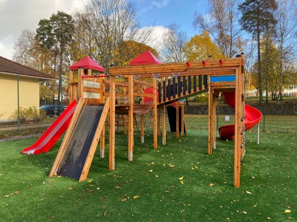Die Spielanlage „Weltraumstation“ von Lars Laj ist ein absoluter Magnet für die Kinder und eine voll ausgestattete Spielinsel. Hier bleibt keine Zeit für Langeweile! Sie können sich richtig entspannen und die ganze Welt vergessen, denn Ihre Kinder werden mit diesem Spielturm mehr Zeit verbringen als Sie denken. Hier ist der überirdische Spaß garantiert!Die Spielanlage „Weltraumstation“ bietet den kleinen Astronauten eine geräumige Wellenrutsche in der roten Farbe des Mars, mit der man eine interplanetare Raumfahrt erleben kann. Außerdem gibt es hier auch viele abenteuerliche Klettergeräte, an denen man vor dem Kampf gegen die Außerirdischen die körperlichen Fähigkeiten verbessern kann. Das Weltraumschiff kann man über die Feuerwehrrutschstange oder Edelstahlrutsche blitzschnell verlassen.Unser Kletterturm wurde aus qualitätvollen Materialien gefertigt. Es empfiehlt sich, eine stoßdämpfende Unterlage zu verwenden, die den Kleinen eine weiche Landung garantieren. Wir empfehlen Ihnen, sich auch mit unserem Angebot an Fallschutzmatten vertraut zu machen. Das Produkt ist für Kinder ab drei Jahren geeignet.