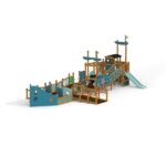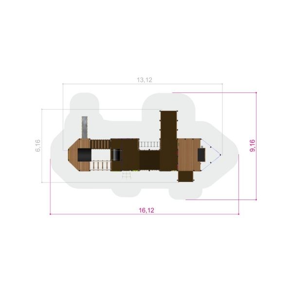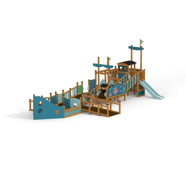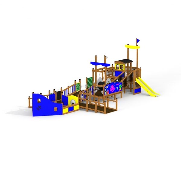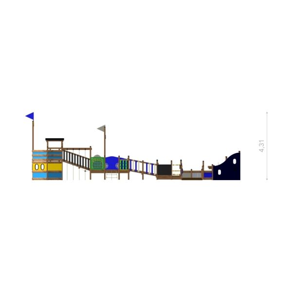 • Grundmaterial: Holz: Lärche, Edelstahl, pulverbeschichteter Stahl, verstärktes Polypropylenseil, Plastisol beschichtetes Stahlblech, Wasserdichtes Sperrholz, HDPE