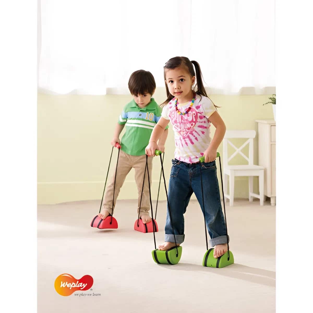 - Zwei Schwierigkeitsstufen: Die Stelzen können auf zwei unterschiedlichen Höhen genutzt werden, indem man sie einfach umdreht. So wächst das Spiel mit den Fähigkeiten des Kindes mit und bietet langanhaltende Motivation.