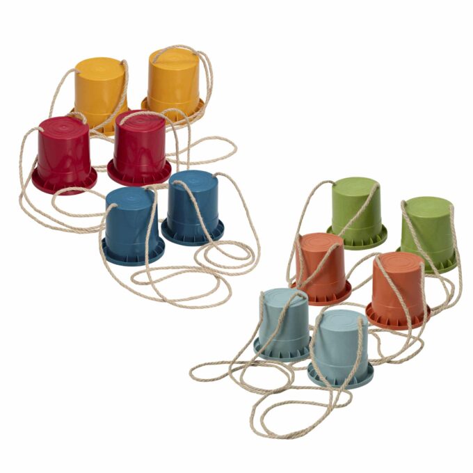 Die Hanfkordeln, die die Stelzen sicher zusammenhalten, sorgen für eine ausgezeichnete Griffigkeit und geben den Kindern gerade zu Beginn die nötige Unterstützung. So können sie sich ganz auf ihre Balance konzentrieren, ohne das Gefühl zu haben, an Stabilität zu verlieren.