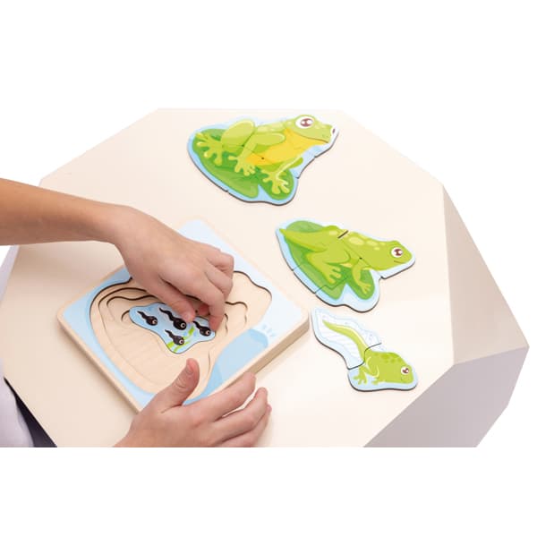 - Puzzle mit 5 Schichten zur Darstellung des Lebenszyklus des Froschs