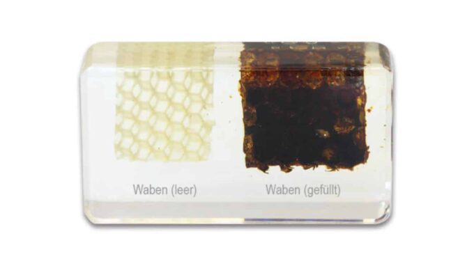 Die Blöcke sind aus robustem Kunststoff gefertigt, was sie ideal für den Einsatz im Klassenzimmer macht. Das Anschauungsmaterial ist leicht zu handhaben und eignet sich hervorragend zum Durchreichen, sodass jede Schülerin und jeder Schüler die Biene aus nächster Nähe betrachten kann.