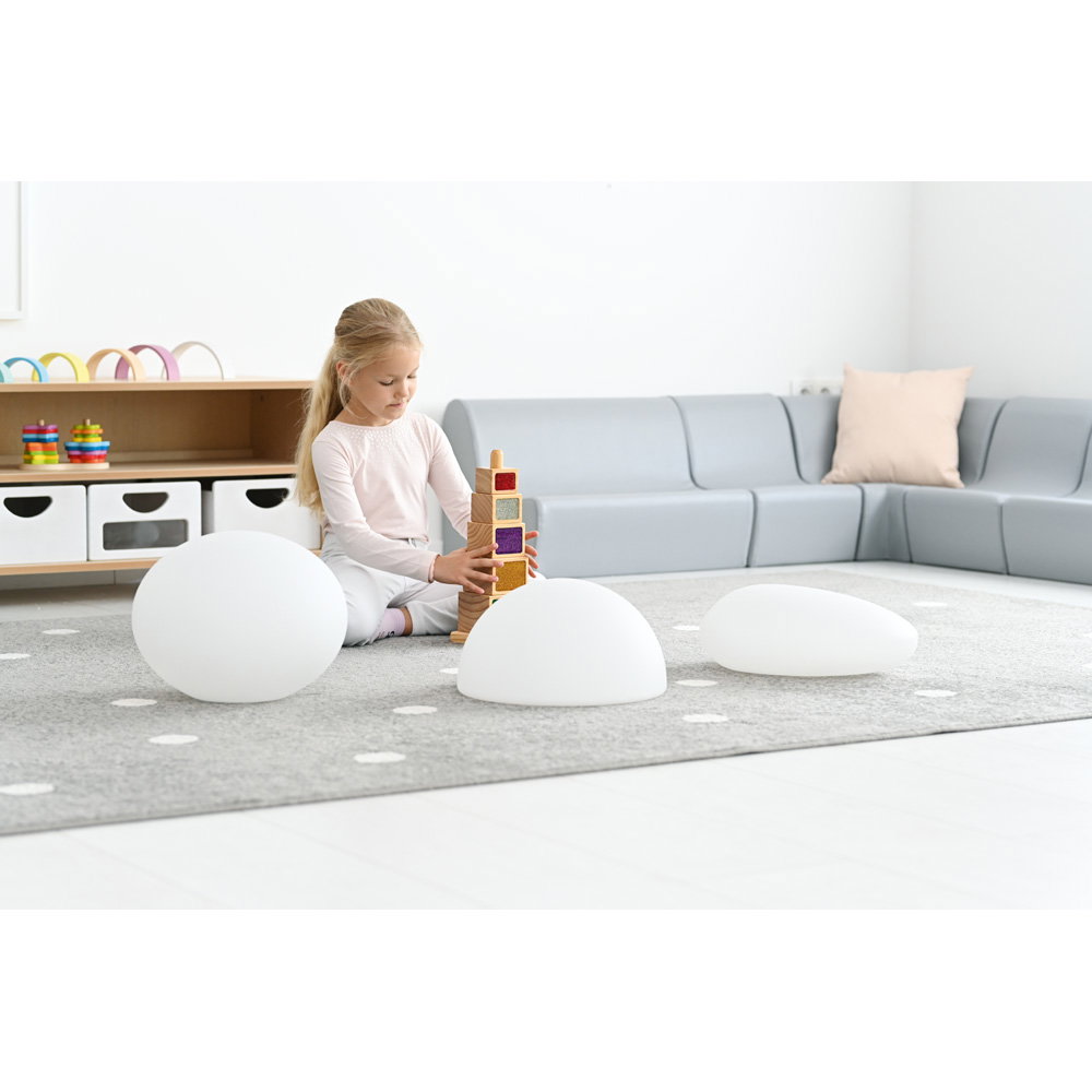 Die Halbkugel-Leuchte ist optimal auf Produkte wie unser Weißes Haus oder die Snoezelecken abgestimmt und hilft dabei, harmonische Entspannungslandschaften zu gestalten.