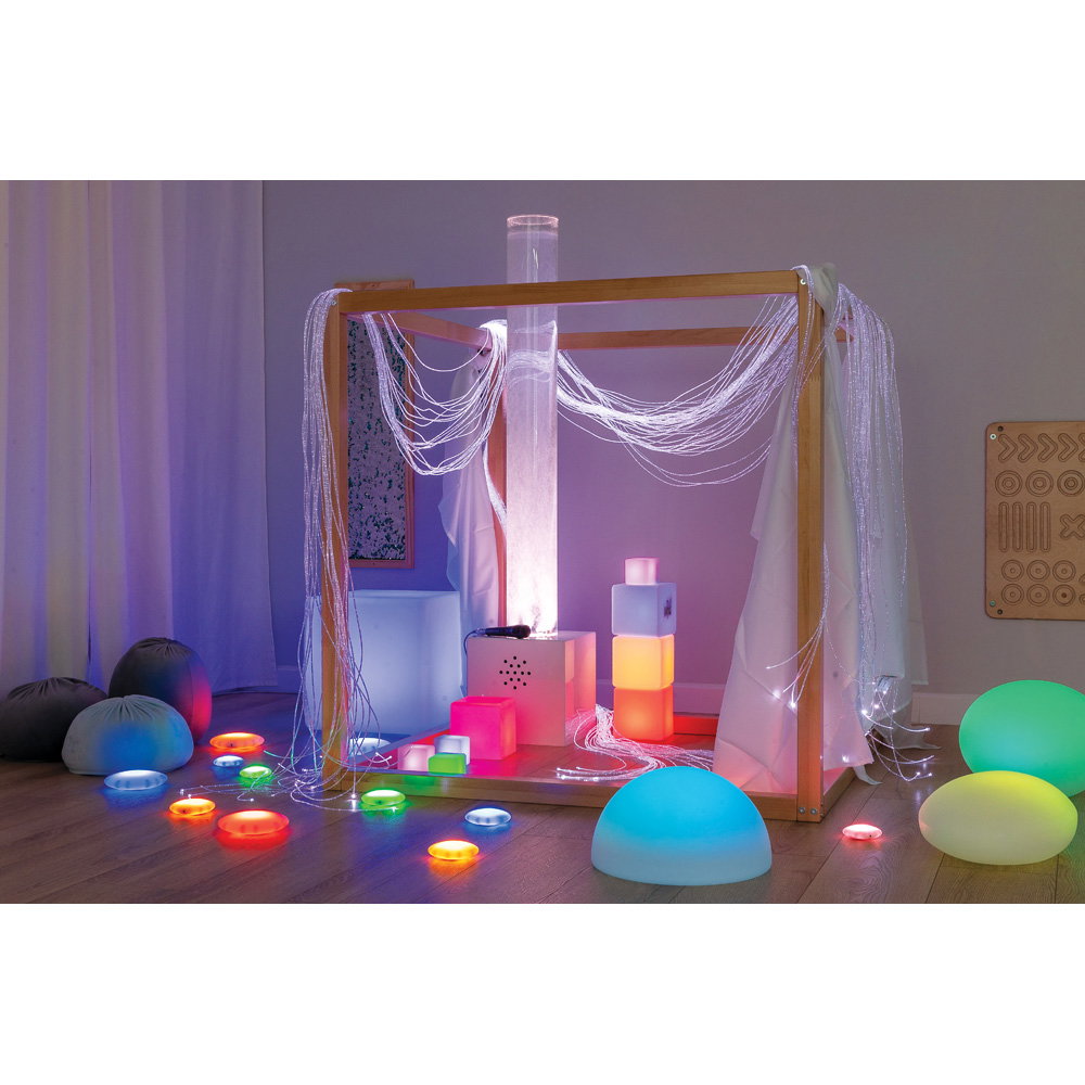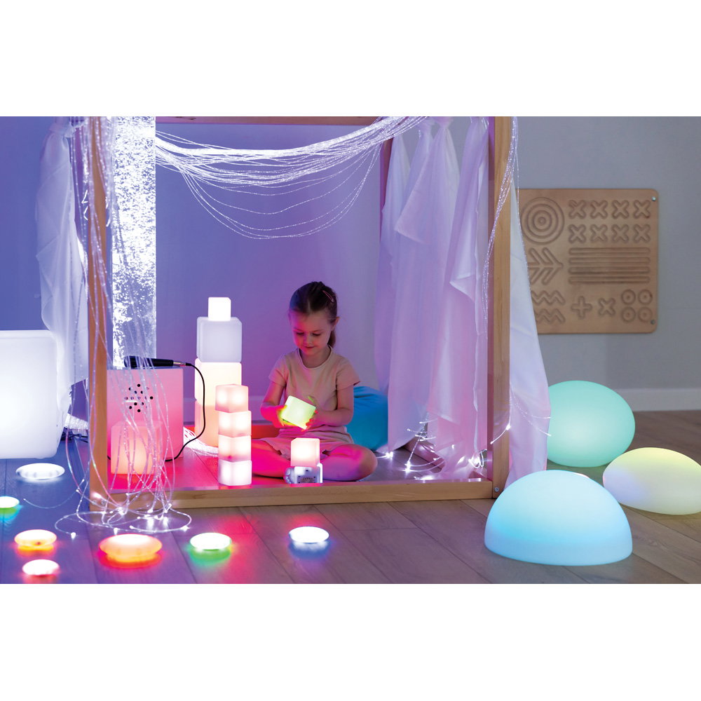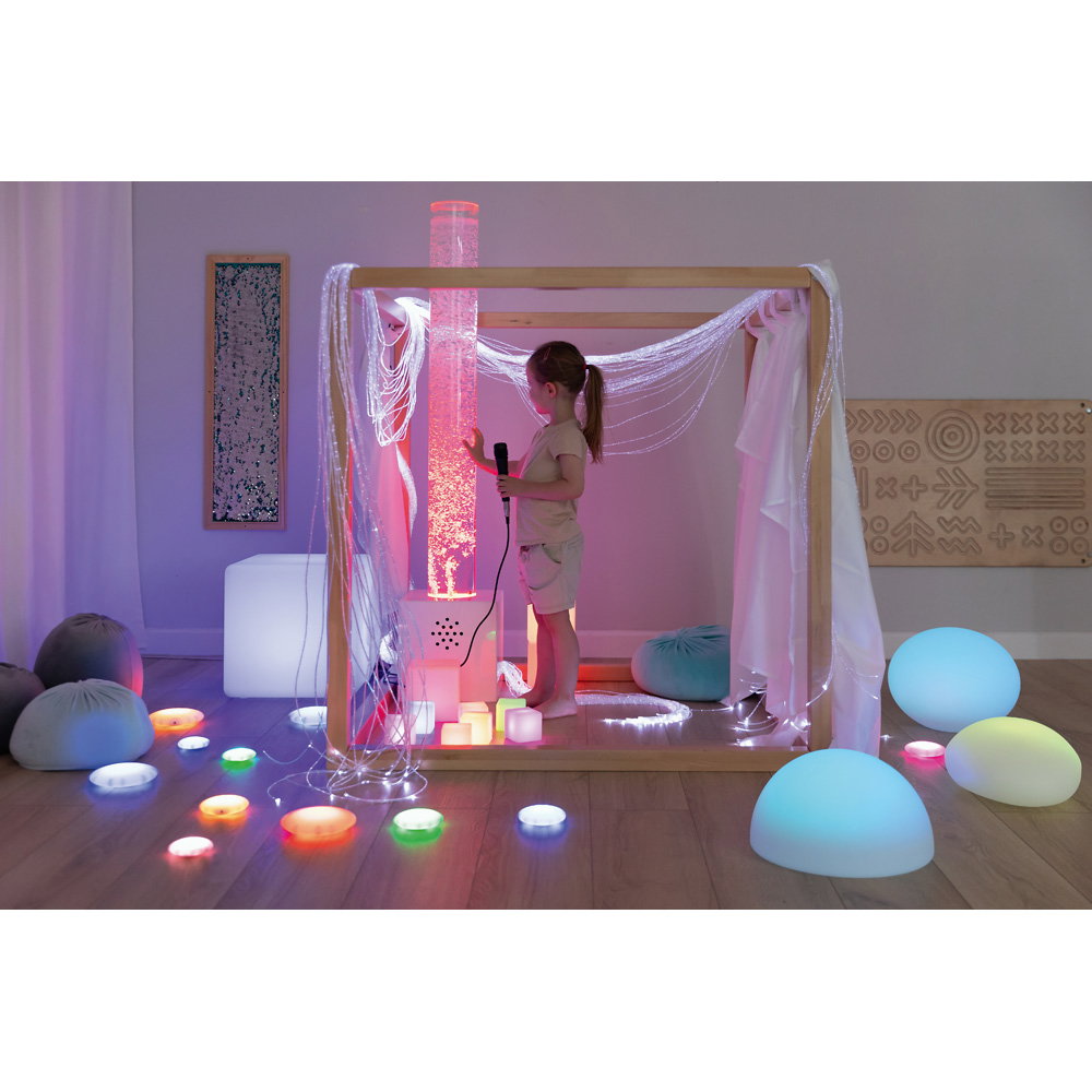 Das sanfte, dimmbare Licht in verschiedenen Farben schafft eine beruhigende Atmosphäre, die nachweislich Stress und Ängste reduzieren kann. - Unterstützung für die sensorische Therapie
