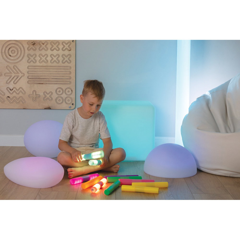 Die gezielte Anregung des Sehsinns durch anpassbare Farben macht die Leuchte zu einem idealen Hilfsmittel für sensorische Integrationsaktivitäten. - Völlige Freiheit dank Akkubetrieb