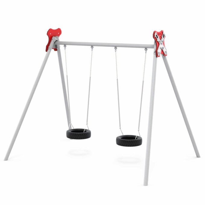 LEDON Extra hohes Metallschaukelgestell mit 2 Reifenschaukeln für Kindergarten- Außenanlagen