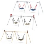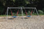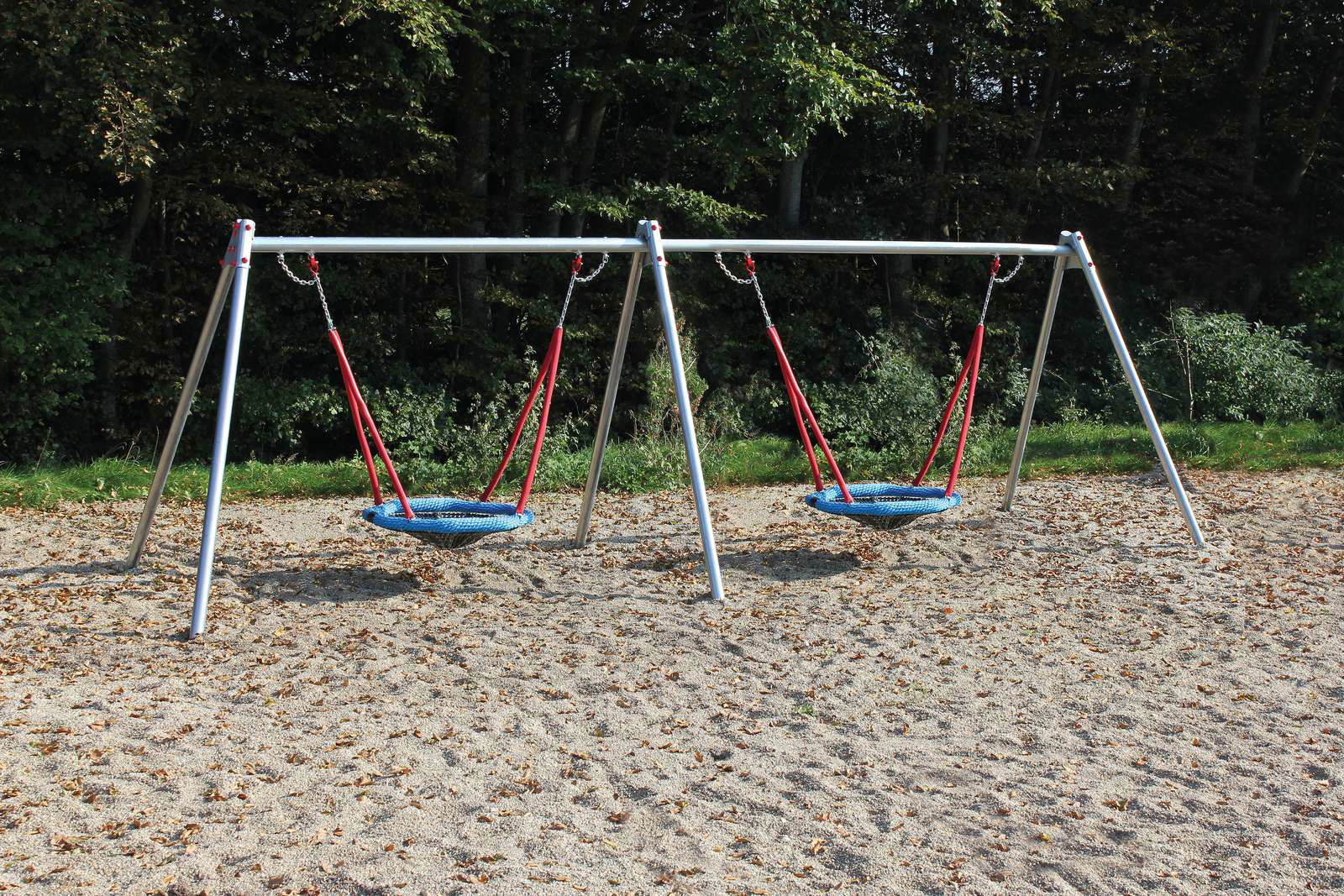 LEDON Metallschaukelgestell mit 2 Vogelnest-Schaukeln Ø100 cm für Kindergarten- Außenanlagen