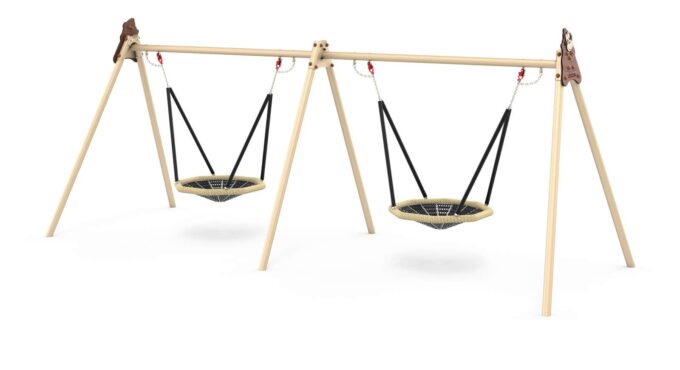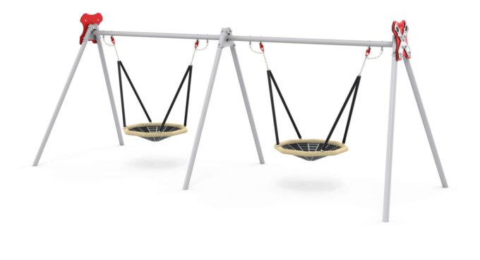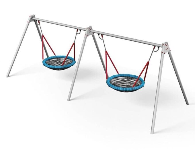 LEDON Metallschaukelgestell mit 2 Vogelnest-Schaukeln Ø100 cm für Kindergarten- Außenanlagen