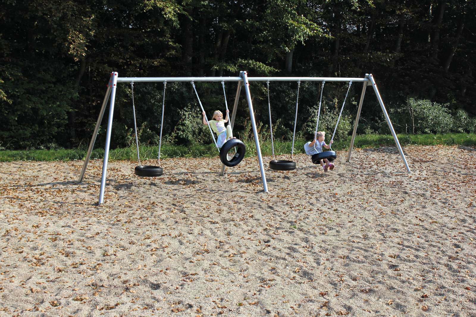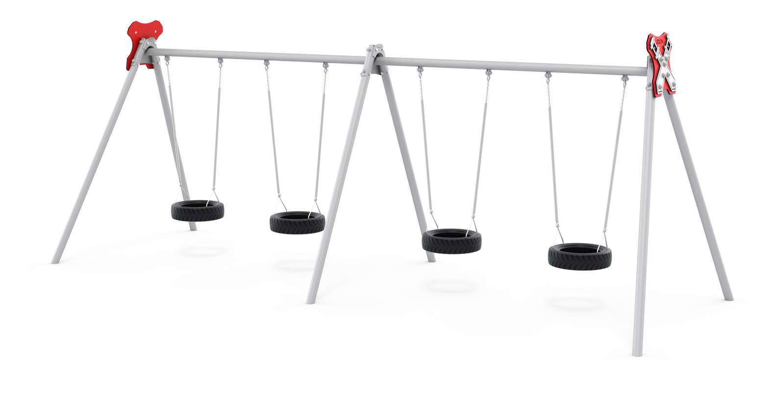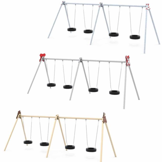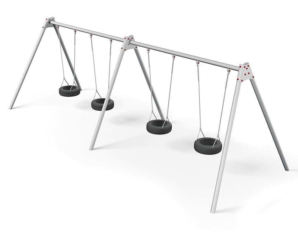 LEDON Metallschaukelgestell mit 4 Reifenschaukeln für Kindergarten- Außenanlagen