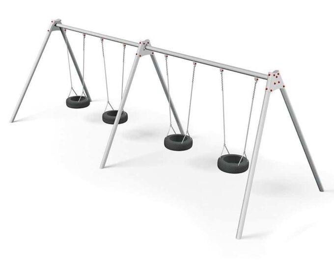LEDON Metallschaukelgestell mit 4 Reifenschaukeln für Kindergarten- Außenanlagen