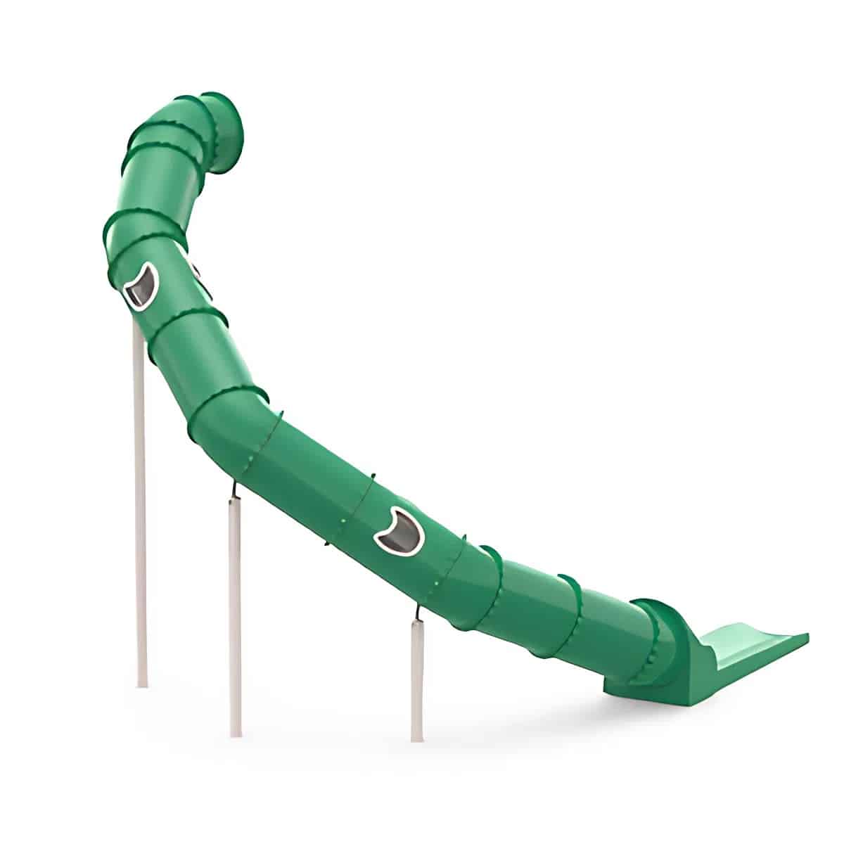 - Intelligentes, platzsparendes Design: Die Fähigkeit, sich elegant um eine Spielanlage zu winden, ist der größte Vorteil dieses Modells. Anstatt wertvollen Platz auf dem Spielplatz zu beanspruchen, nutzt die Rutsche den vertikalen Raum um den Turm herum. Dies schafft eine optisch beeindruckende und nahtlose Verbindung zwischen Turm und Rutsche und ermöglicht den Einbau einer spektakulären Großrutsche auch auf begrenztem Raum.