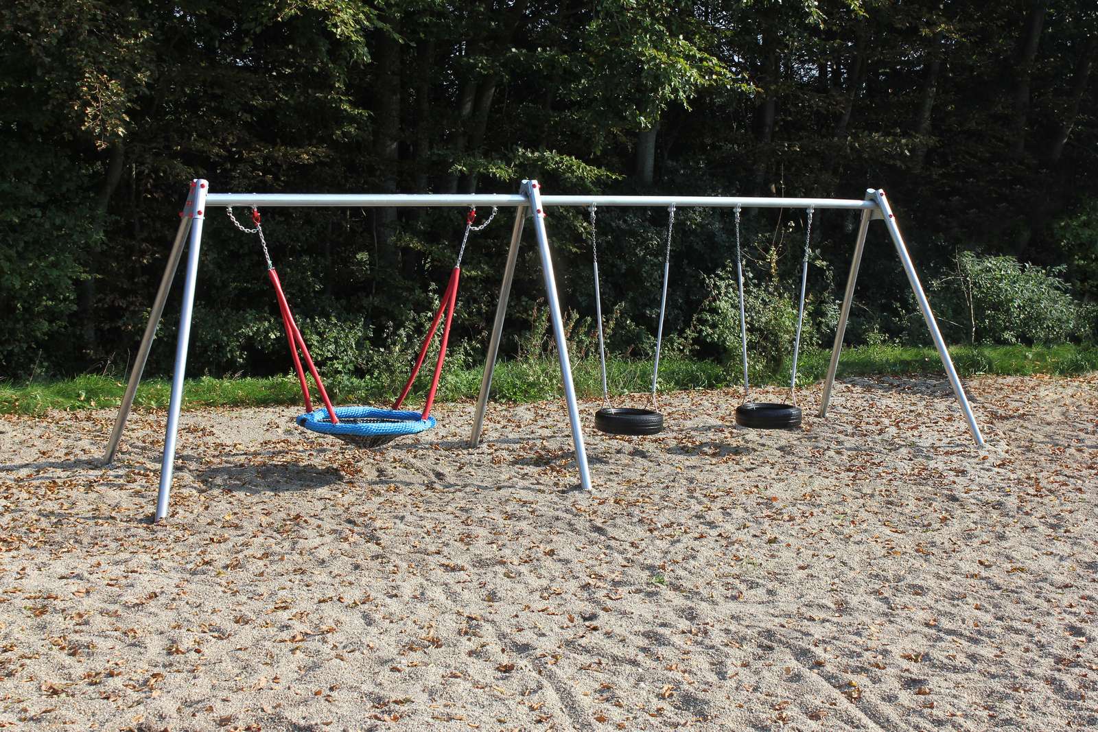 LEDON Metallschaukelgestell mit 2 Reifenschaukeln und einem Vogelnest für Kindergarten- Außenanlagen