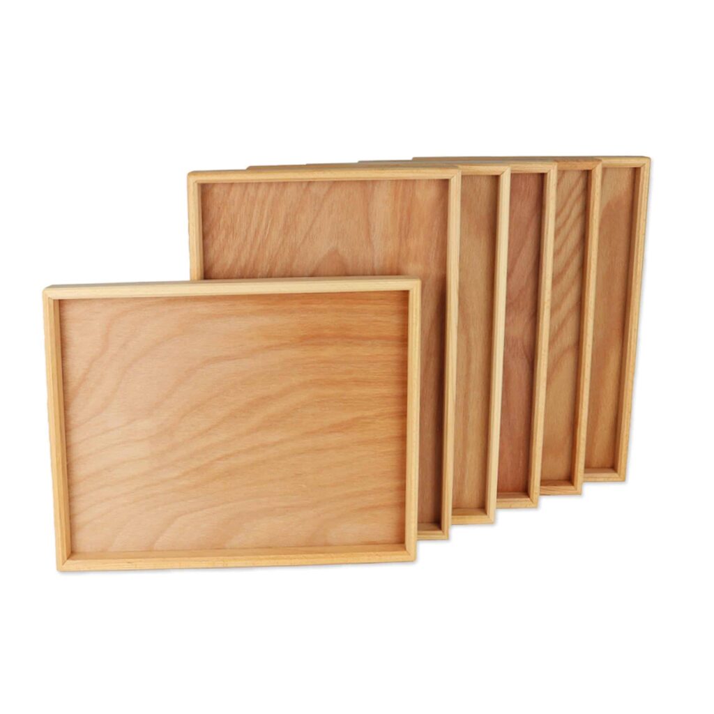 Die Legetabletts Natur sind aus hochwertigem, nachhaltig produziertem Holz gefertigt. Sie überzeugen durch eine robuste Bauweise und sind ideal für den täglichen Einsatz im Spielzimmer. Die glatten Oberflächen sorgen für eine angenehme Haptik und verhindern Verletzungen, sodass die Sicherheit Ihrer Kinder beim Spielen gewährleistet ist.