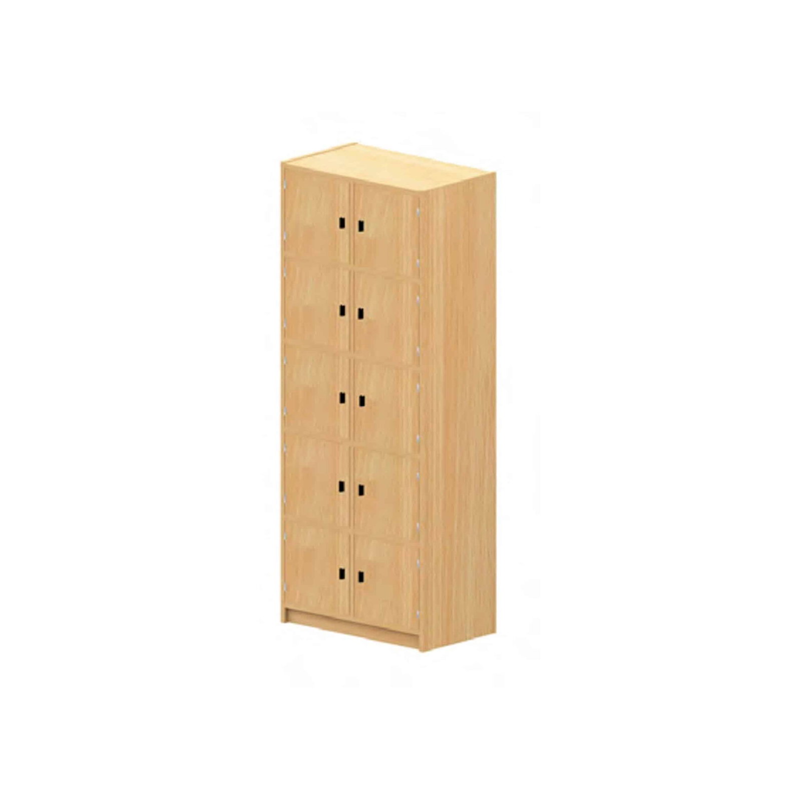 Die zehn abschließbaren Eigentumsfächer ermöglichen es, persönliche Unterlagen und Materialien sicher zu verwahren. Das ansprechende Buche-Dekor macht den Schrank nicht nur funktional, sondern auch zu einem ästhetischen Highlight im Lehrerzimmer.