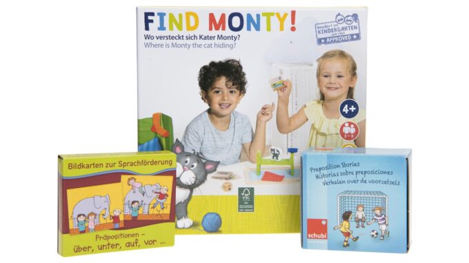 Das Set enthält verschiedene Materialien, die sowohl die visuelle als auch die auditive Wahrnehmung der Kinder ansprechen. Durch das Spiel „Find Monty“ werden die Kinder nicht nur in die einzelnen Präpositionen eingeführt, sondern üben auch gezielt deren Anwendung in verschiedenen Kontexten. Die Bildkarten helfen den Kindern, die Begriffe anschaulich zu verinnerlichen. Sie fördern die Benennung von Ortsangaben und unterstützen beim Plural sowie beim sinnentnehmenden Hören.