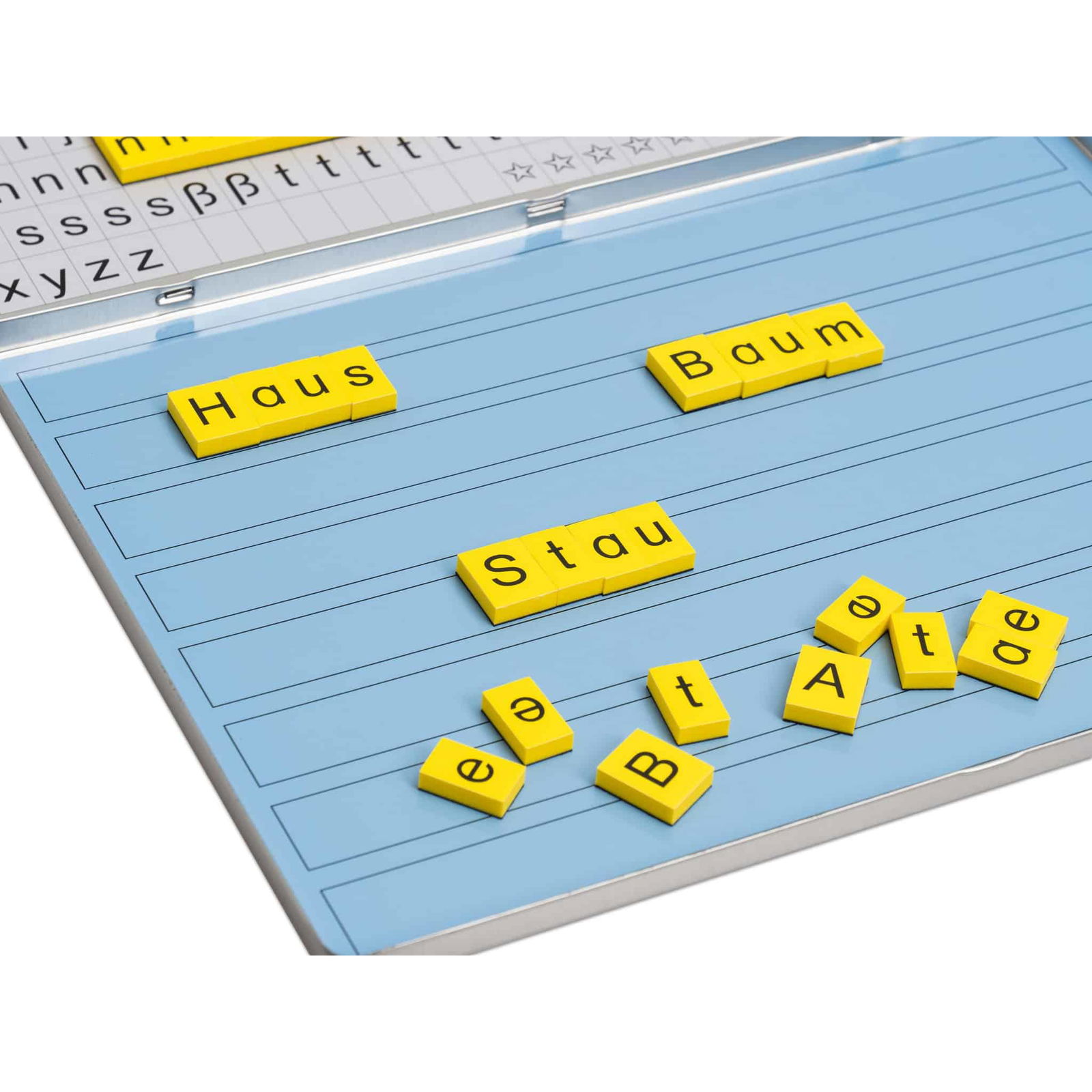 - Magnetische Buchstaben: Haftet sicher an der magnetischen Fläche und ermöglicht ein einfaches Spielen.