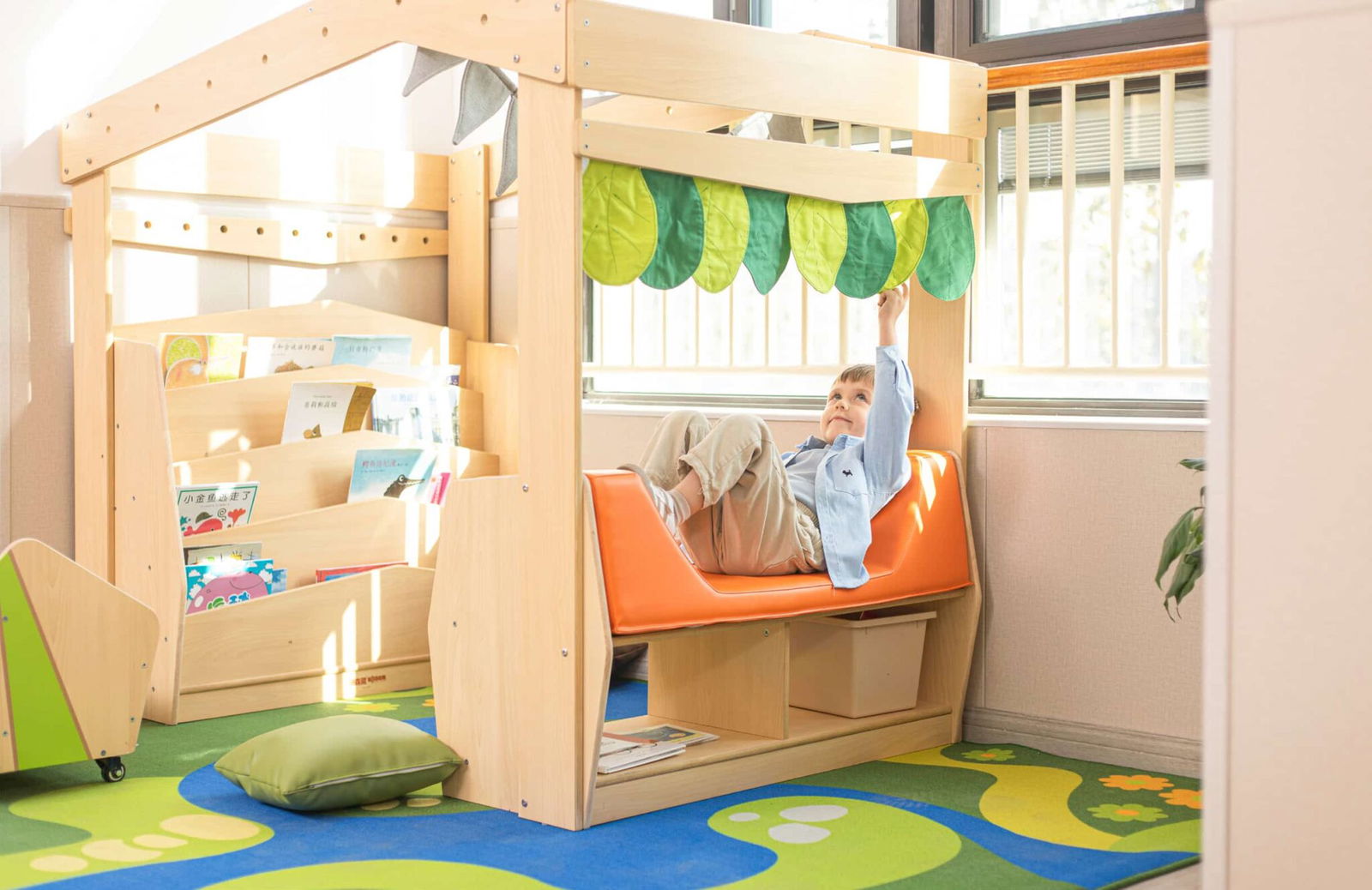 - Flexibel einsetzbar: Ob in der Leseecke, Gruppenraum oder Bibliothek – die Lese- und Kuschelecke ist vielseitig nutzbar und fördert Ruhephasen im Alltag.