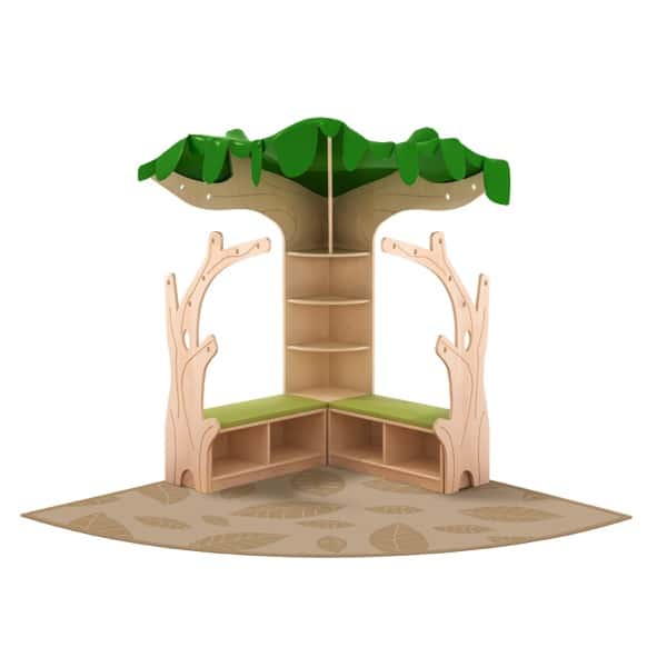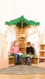 Die Leseecke Baum bietet nicht nur Platz zum Sitzen, sondern auch eine ideale Umgebung, um gemeinsam Zeit zu verbringen. Das mitgelieferte Stoffdach und der Teppich verleihen der Leseecke einen liebevollen Wohlfühlcharakter, der Kinder dazu ermutigt, sich zu entspannen, Geschichten zu entdecken oder kreatives Spiel zu erleben. Von saisonalen Themen bis hin zu eigenen Bastelarbeiten – die Äste der Leseecke können unter Anleitung der Erzieher kreativ gestaltet werden und machen die Leseecke zu einem immer wieder neuen Erlebnis.
