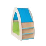 Dieses geräumige und solide Häuschen bietet den perfekten Rückzugsort zum Erholen und gemütlichen Schmökern in Bilderbüchern. Im Inneren des Häuschens sorgen grüne Matten für Behaglichkeit, die aus robustem Schaumstoff bestehen und mit einem pflegeleichten Kunstlederbezug versehen sind. Um viele Lieblingsbücher stets griffbereit zu haben, befinden sich an den Äußenseiten jeweils drei praktische Bücherregale. Die Konstruktion des Häuschens besteht aus einem robusten Rahmen aus lackiertem Sperrholz, welches 18 mm dick ist, um Stabilität und Langlebigkeit zu gewährleisten. Als schönes Detail ist ein abnehmbares Textildach vorhanden, das aus 100 % Polyester gefertigt ist und sich problemlos bei 30°C waschen lässt. Die Außenmaße des Häuschens betragen 165 cm in der Breite, 79 cm in der Tiefe und eine Höhe von 180 cm, was ausreichend Platz für eine entspannte Auszeit bietet.