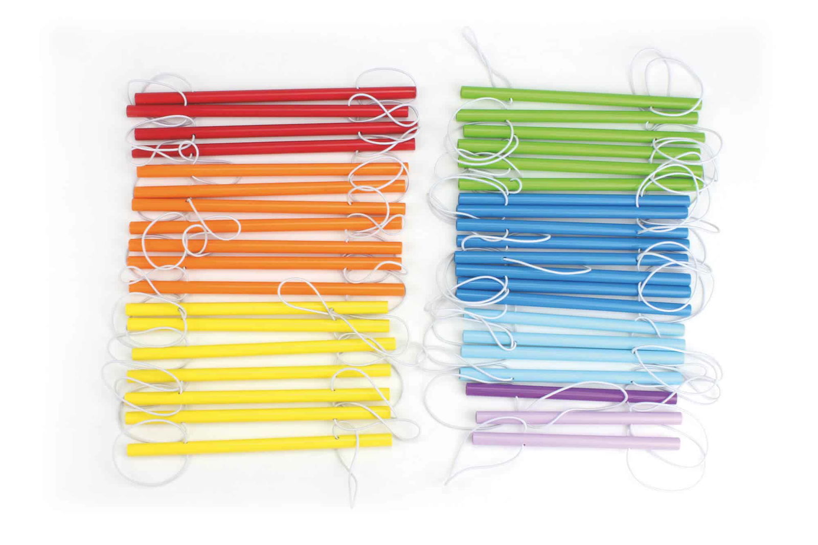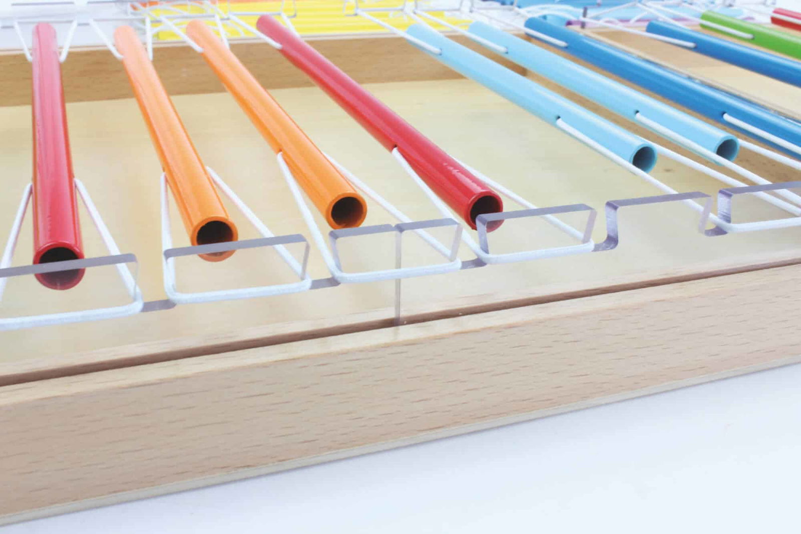 - Die Klangkörper können in freier Reihenfolge oder nach einer Vorlage befestigt werden